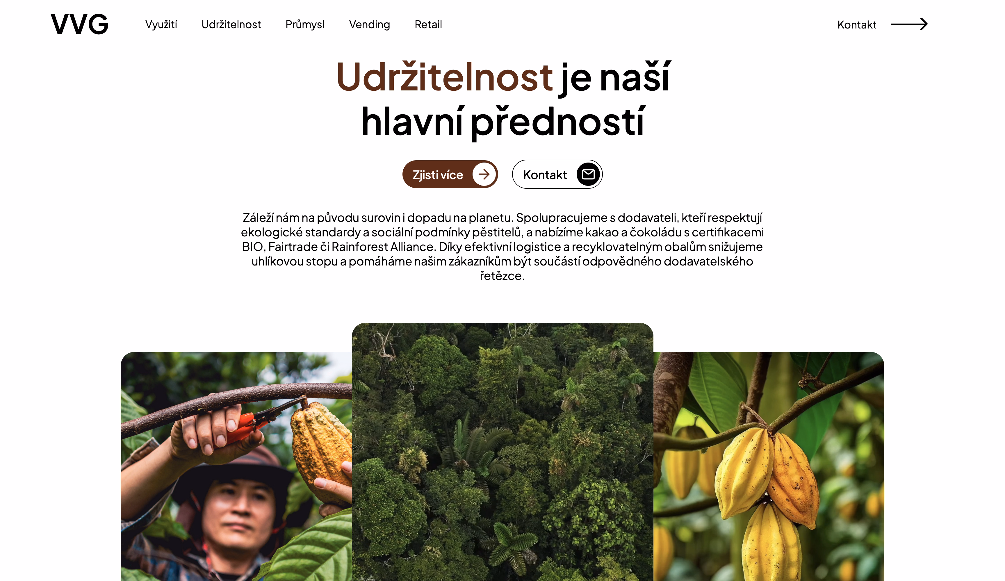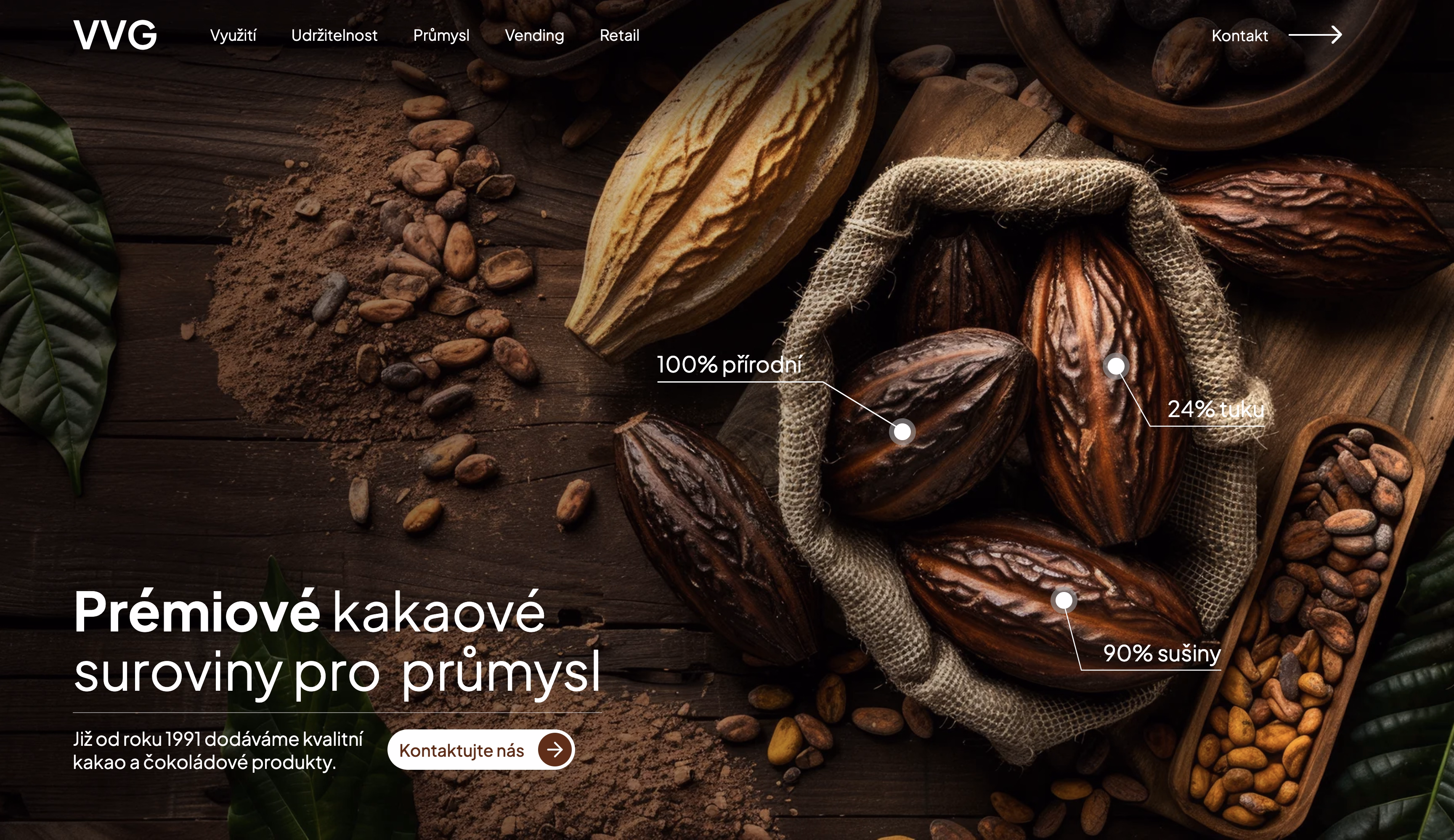 Pro VV Group, předního distributora kakaa a čokolády, jsme transformovali starý web na moderní nástroj pro akvizici partnerů. Spojili jsme profesionální korporátní styl s jemným storytellingem a GSAP animacemi, které podtrhují prémiovost surovin i důraz na udržitelnost. Výsledkem je reprezentativní a přehledný web, který jasně komunikuje hodnoty firmy a buduje důvěru u nových B2B klientů.