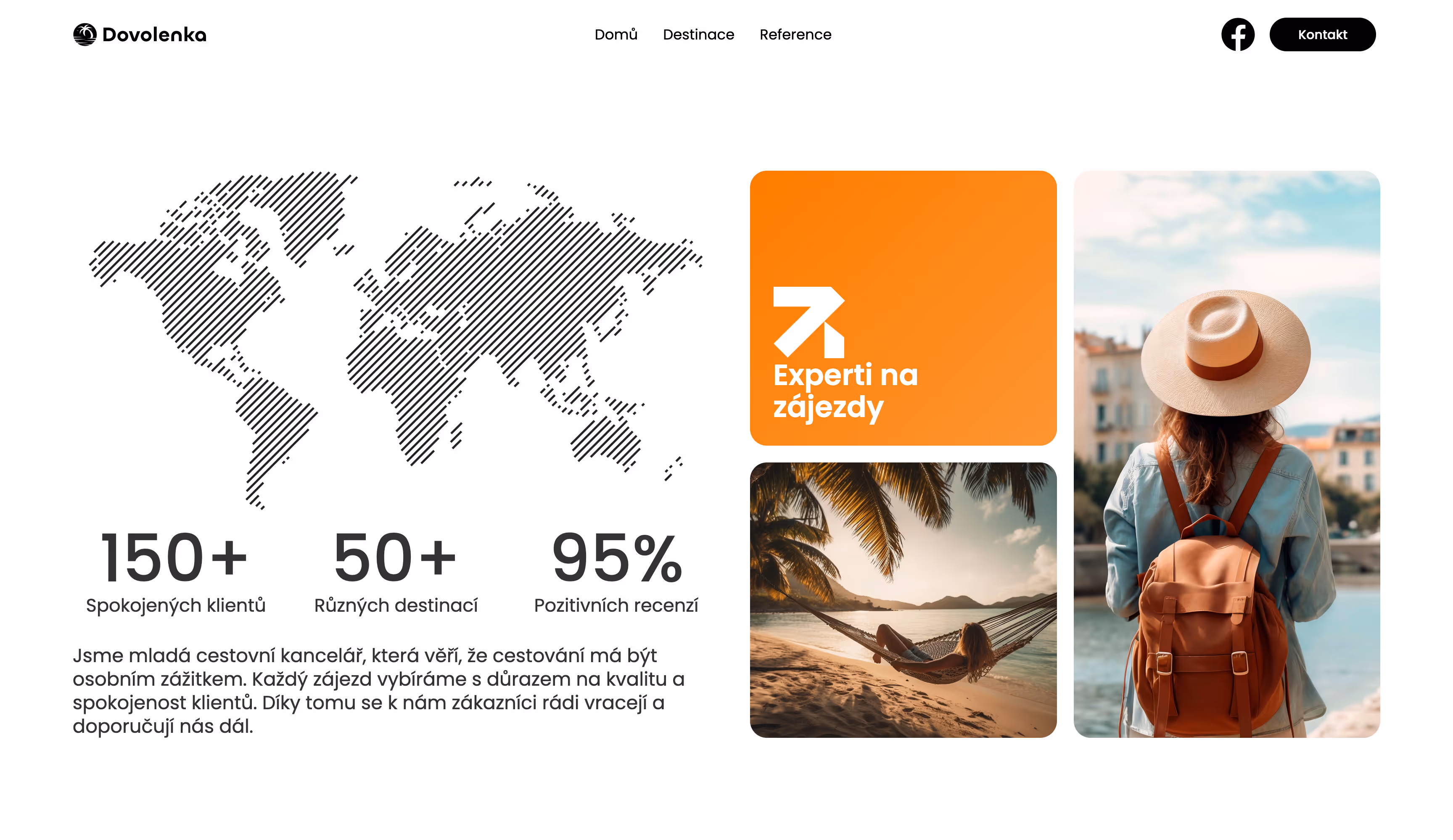 Pro cestovní agenturu Dovolenka jsme nahradili manuální prodej plně automatizovaným řešením. Vytvořili jsme vizuálně atraktivní web s GSAP mikroanimacemi běžící na serverless technologii Cloudflare. Implementace rezervačního systému na míru a důraz na UX proměnily web ve výkonný prodejní kanál, který zvedl počet poptávek z 5 na 40 měsíčně.